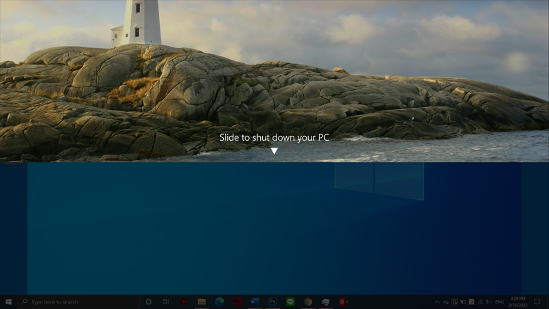 Khi click vào Shortcut vừa tạo, màn hình của bạn sẽ hiển thị như bên dưới. Chỉ cần kéo xuống là máy sẽ shutdown ngay lập tức.